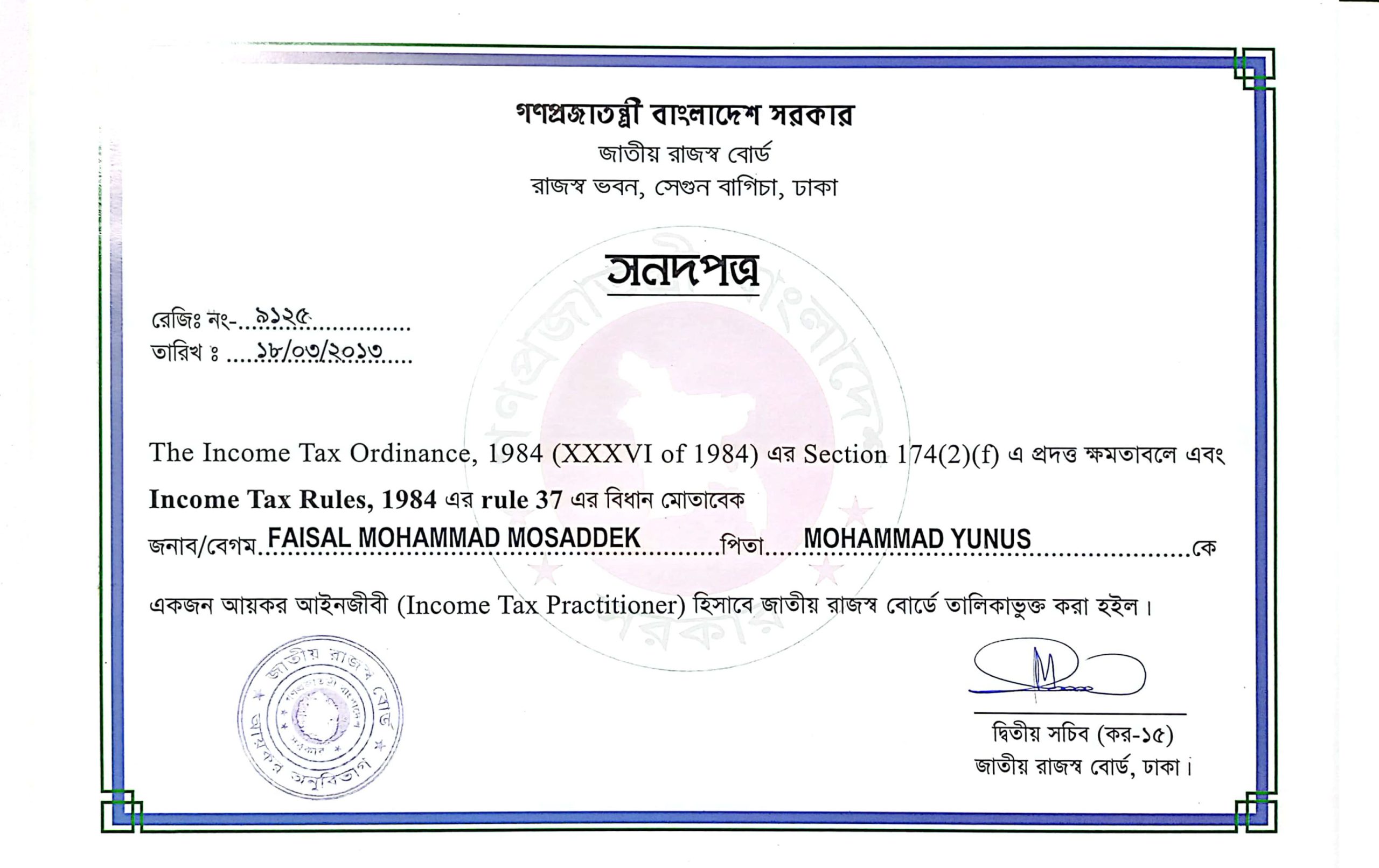 Registered Advocate on Record at Supreme Court of Bangladesh.